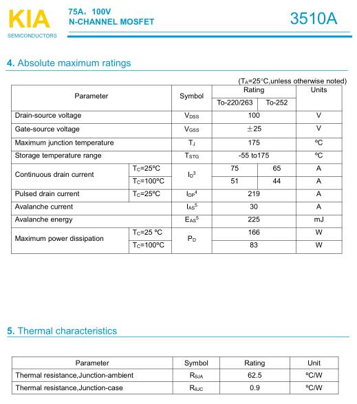 MOS管KIA3510A替代IRF540N-KIA3510A中文資料 原廠免費送樣-KIA MOS管