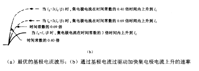 圖 8.2  (b)給出了這種 “ 導通過MOS管驅動” 效應的圖示。如果對導速度沒有要求,則為了 獲得要求的集電極電流 ( Ic1) 所需要的基極輸入電流 ( /bl ) 只要滿足將電壓 Vee降低到集電極負載線和lc/Vce曲線的交點處的飽和電壓Vce(at)的水平上就可以了。在滿足上面要求的/bl的作用下,集電極電流將以某個時間常數ta呈指數上升,并且在3ta的時間內進入 lci5%的范圍內。