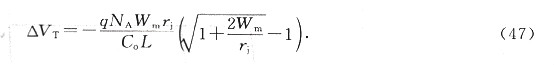 閾值電壓漂移量AVT是由于耗盡區(qū)由長方形LXWm變?yōu)樘菪?L+L‘) Wm/2,而使得電荷減少所形成的.△VT為(參考習題27):