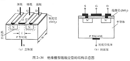 絕緣柵型場效應(yīng)管的構(gòu)造表示圖如圖2-34所示。