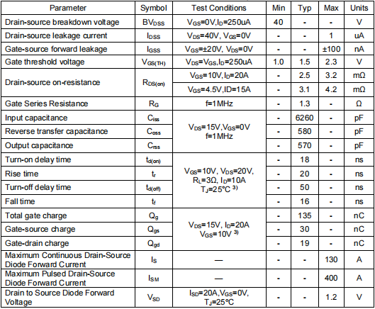 漏源通態(tài)電阻(RDS(on)):2.5mΩ