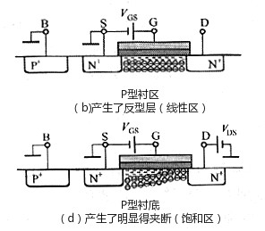 另外,當(dāng)VGS增加時,由丁感應(yīng)溝道變厚,溝道電阻減小,飽和漏極電流會相應(yīng)增大。