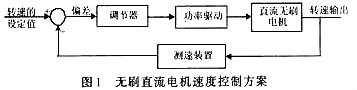 對無刷直流電機轉(zhuǎn)速的控制即可采用開環(huán)控制,也可采用閉環(huán)控制。與開環(huán)控制相比,速度控制閉環(huán)系統(tǒng)的機械特性有以下優(yōu)越性:閉環(huán)系統(tǒng)的機械特性與開環(huán)系統(tǒng)機械特性相比,其性能大大提高;理想空載轉(zhuǎn)速相同時,閉環(huán)系統(tǒng)的靜差率(額定負載時電機轉(zhuǎn)速降落與理想空載轉(zhuǎn)速之比)要小得多;當(dāng)要求的靜差率相同時, 閉環(huán)調(diào)速系統(tǒng)的調(diào)速范圍可以大大提高。無刷直流電機的速度控制方案如圖1所示。