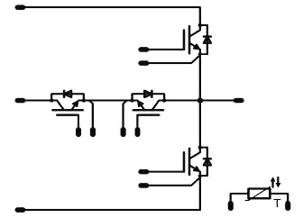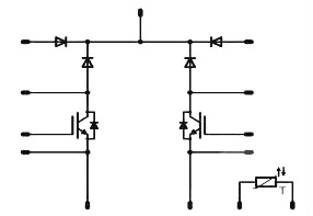 這種功率器件還真有,它就是集成多個元器件的功率模塊。下圖是用于光伏逆變器的功率模塊,它結構緊湊,將多個分立器件集成到一個模塊中,減少了器件之間連線的寄生阻抗。功率模塊驅動回路與主功率回路從不同的管腳分別引出,減少了IGBT主功率回路對驅動回路的電磁干擾。模塊配置了NTC電阻,可以精準地檢測模塊內部溫度。2802.png前級DC-DC電路 由2個高速IGBT、4個碳化硅二極管和一個溫度傳感器等7個元器件組成,包含雙路boost模塊,額定電流為50A,可以支持25kW的MPPT回路。