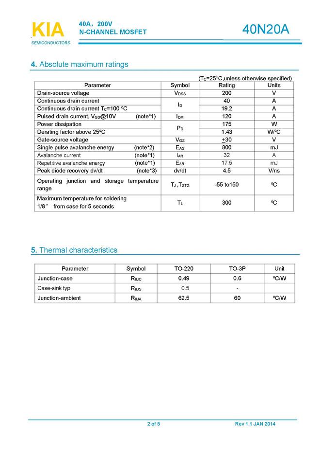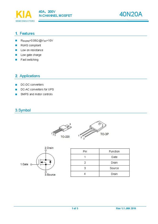 參數: ID(A): 40    BVDSS(V): 200    RDS(ON): 0.1    Qg(nC): 50    Package: TO-220、TO-3P