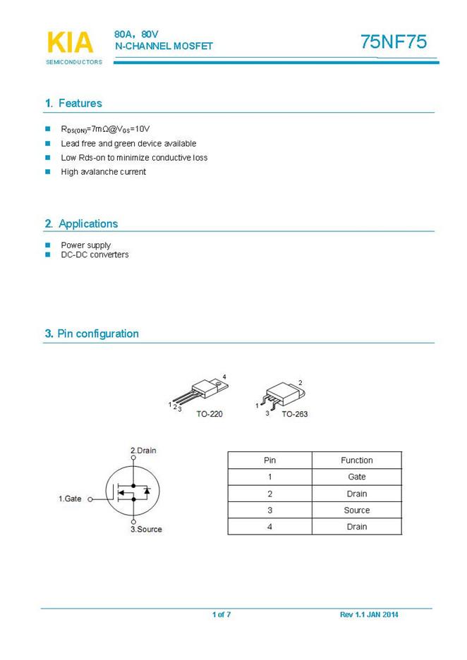 參數: ID(A): 80    BVDSS(V): 80    RDS(ON): 0.011    Qg(nC): 76    Package: TO-220、TO-263