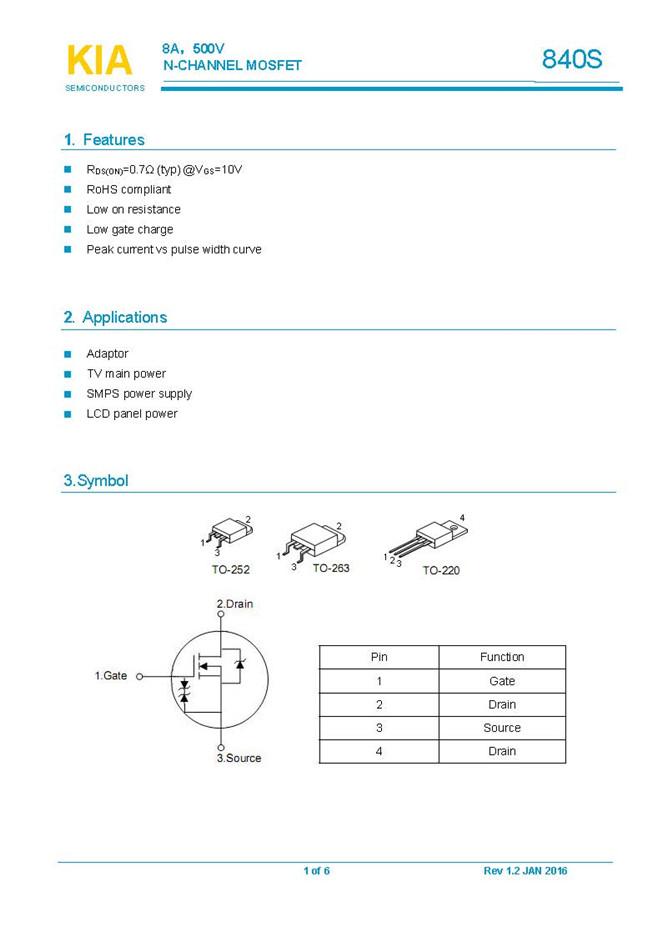 參數: ID(A): 8    BVDSS(V): 500    RDS(ON): 0.9    Qg(nC): 24    Package: TO-252、TO-263、TO-220 TO-220F