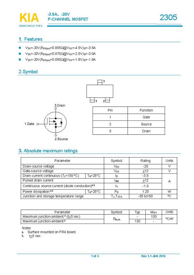 參數(shù): ID(A): -3.5 BVDSS(V): -20 RDS(ON): 0.09 Qg(nC): 15 Package: SOT-23