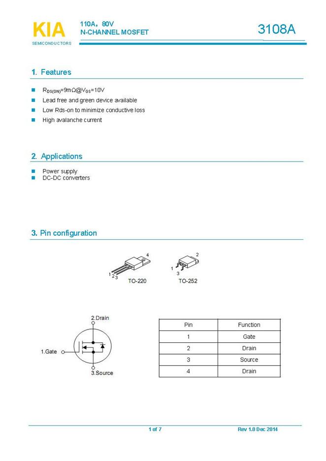 參數: ID(A): 110    BVDSS(V): 80    RDS(ON): 0.012    Qg(nC): 76    Package: TO-220 TO-252
