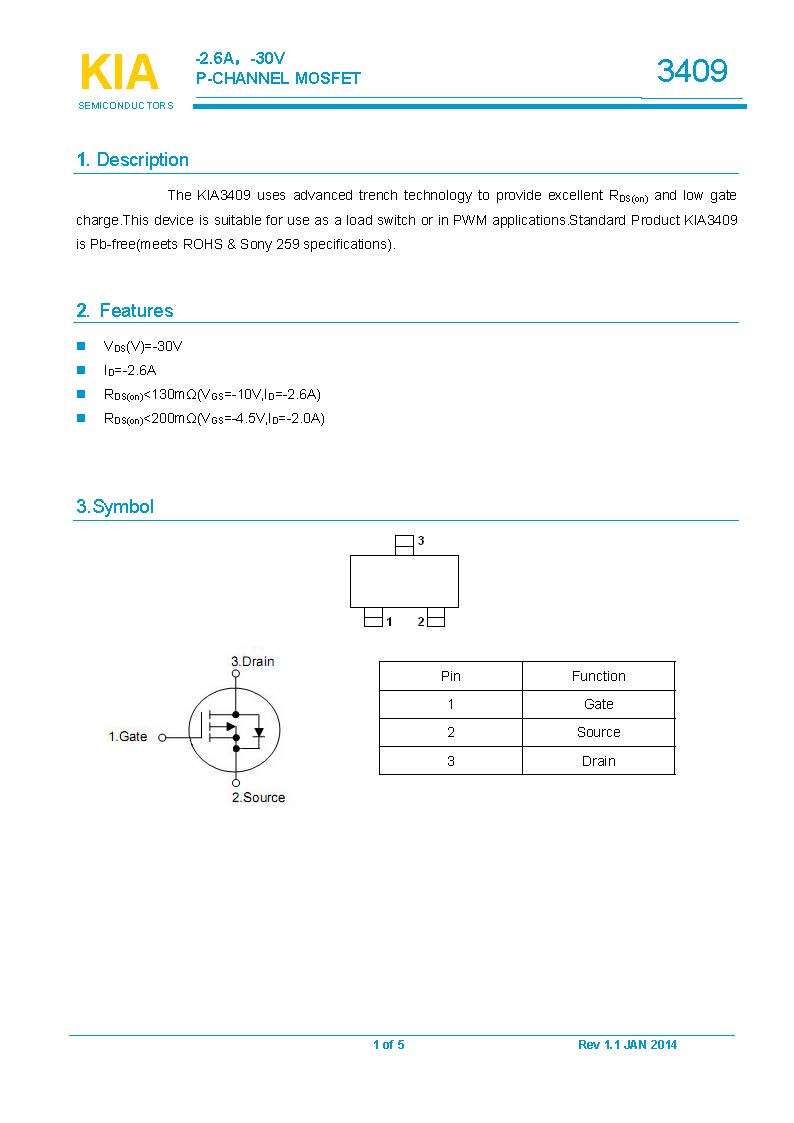 參數: ID(A): -2.6 BVDSS(V): -30 RDS(ON): 0.13 Qg(nC): 9 Package: SOT-23