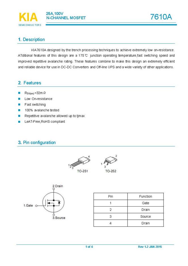 參數: ID(A): 25 BVDSS(V): 100 RDS(ON): 0.038 Qg(nC): 55 Package: TO-251、TO-252
