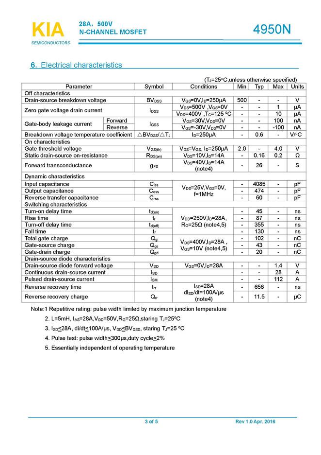 參數: ID(A): 28 BVDSS(V): 500 RDS(ON): 0.16 Qg(nC): 102 Package: TO-3P