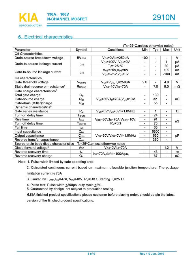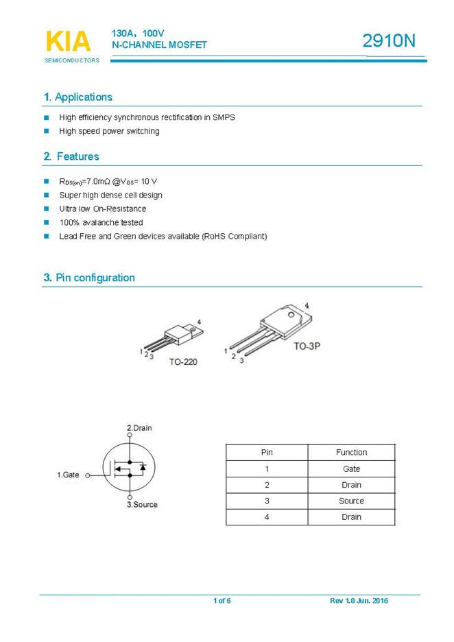 參數: ID(A): 130 BVDSS(V): 100 RDS(ON): 0.007 Qg(nC): 130 Package: TO-220、TO-3P