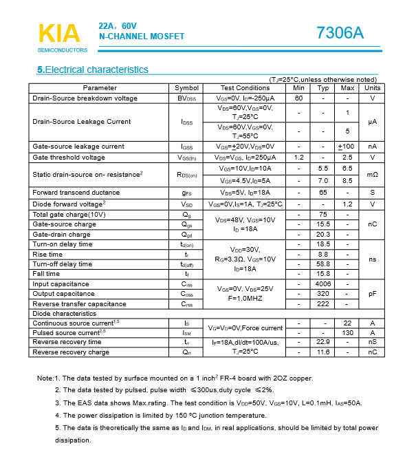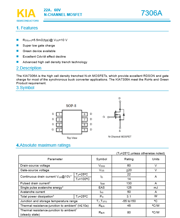 參數: ID(A): 22 BVDSS(V): 60 RDS(ON): 0.0055 Qg(nC): 75 Package: SOP-8