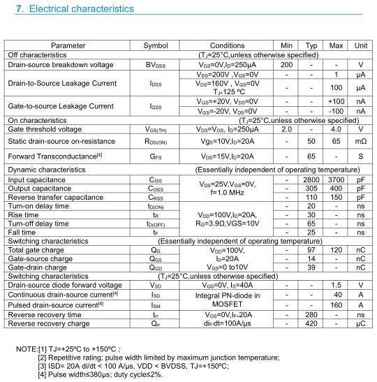 參數: ID(A): 40    BVDSS(V): 200    RDS(ON): 0.65    Qg(nC): 97    Package: TO-220
