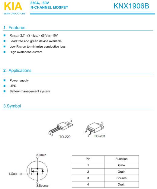 參數: ID(A): 230    BVDSS(V): 60    RDS(ON): 2.7    Qg(nC): 742    Package: TO-263