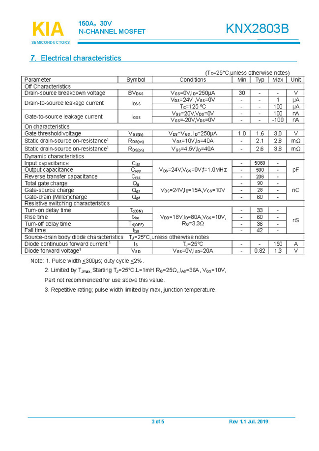 參數: ID(A): 150 BVDSS(V): 30 RDS(ON): 2.1 Qg(nC): 90 Package: TO-252.TO-263.DFN5*6