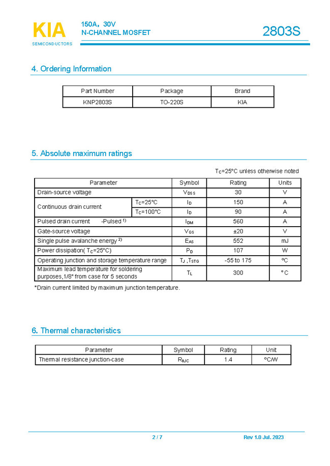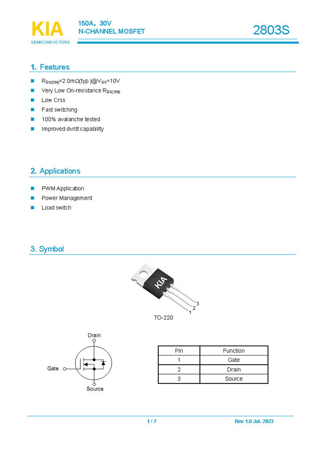 參數: ID(A): 150 BVDSS(V): 30 RDS(ON): 2 Qg(nC): 92 Package: TO-220S