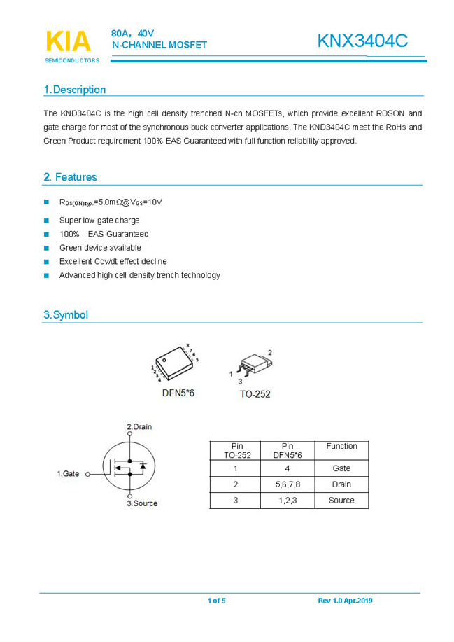 參數(shù): ID(A): 80 BVDSS(V): 40 RDS(ON): 5 Qg(nC): 28 Package: DFN5*6.TO-252