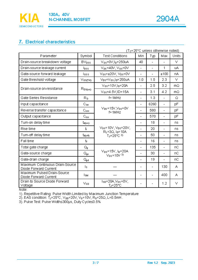 參數: ID(A): 130 BVDSS(V): 40 RDS(ON): 2.5 Qg(nC): 135 Package: TO-252.TO-263.TO-220