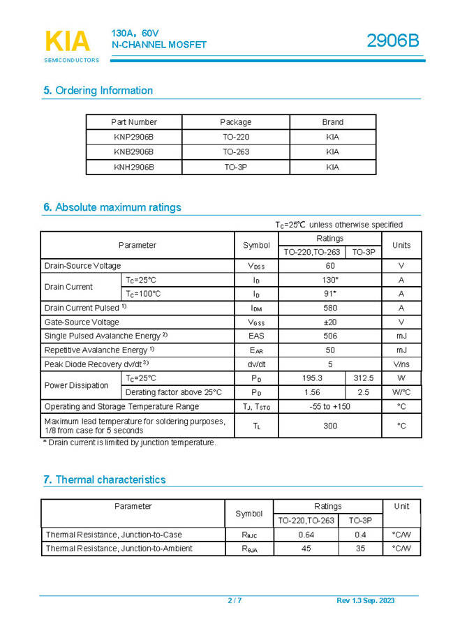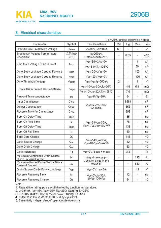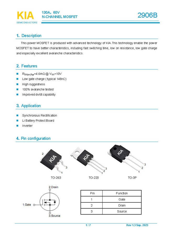 參數(shù): ID(A): 130 BVDSS(V): 60 RDS(ON): 4.6mΩ Qg(nC): 148 Package: TO-220.TO-263.TO-3P
