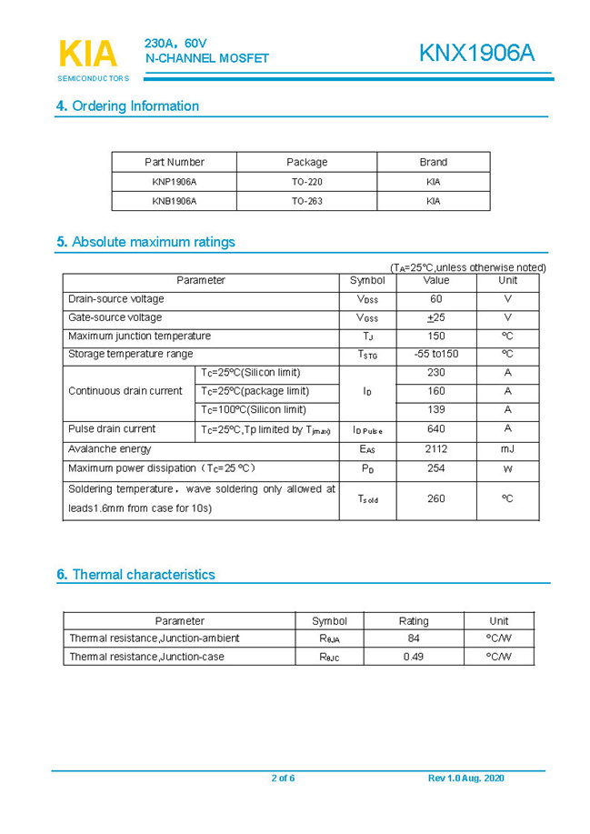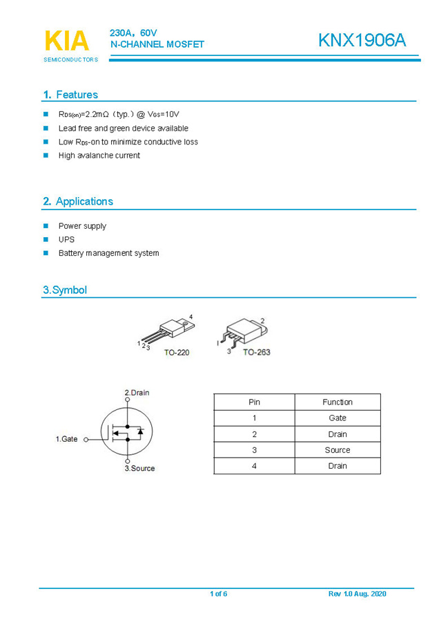 參數: ID(A): 230 BVDSS(V): 60 RDS(ON): 2.2mΩ Qg(nC): 182 Package: TO-263.TO-220