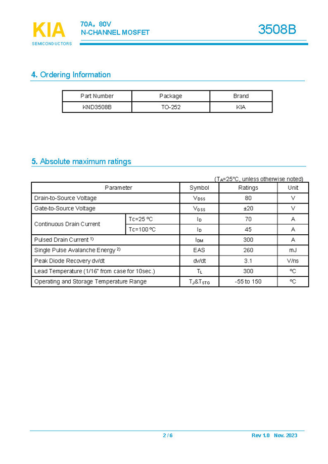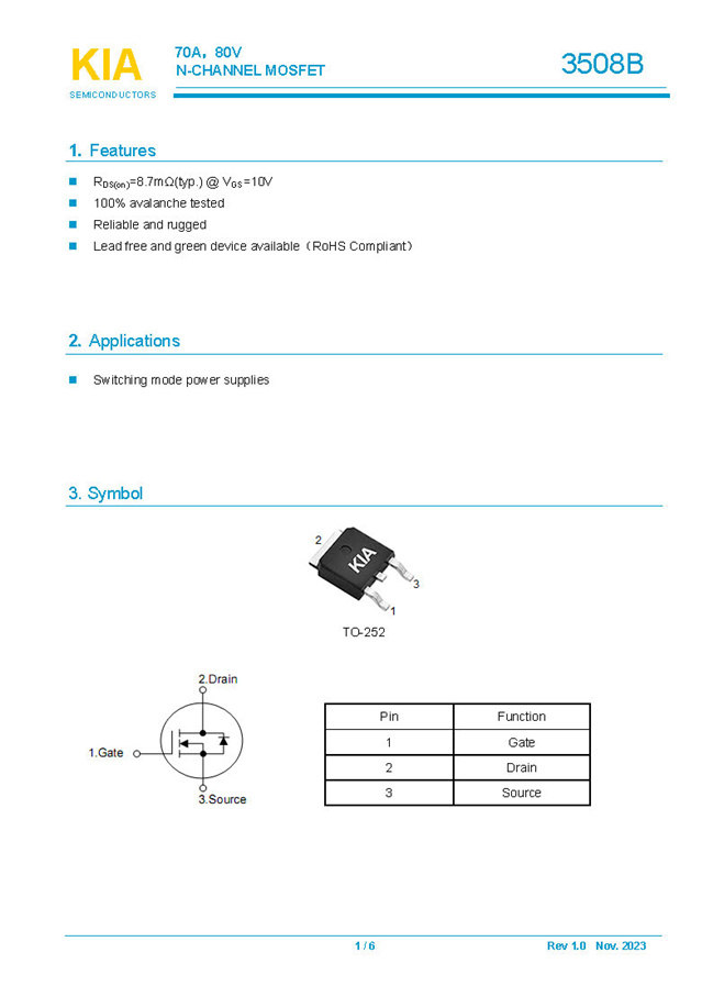 參數: ID(A): 70    BVDSS(V): 80    RDS(ON): 8.7mΩ    Qg(nC): 90    Package: TO-252