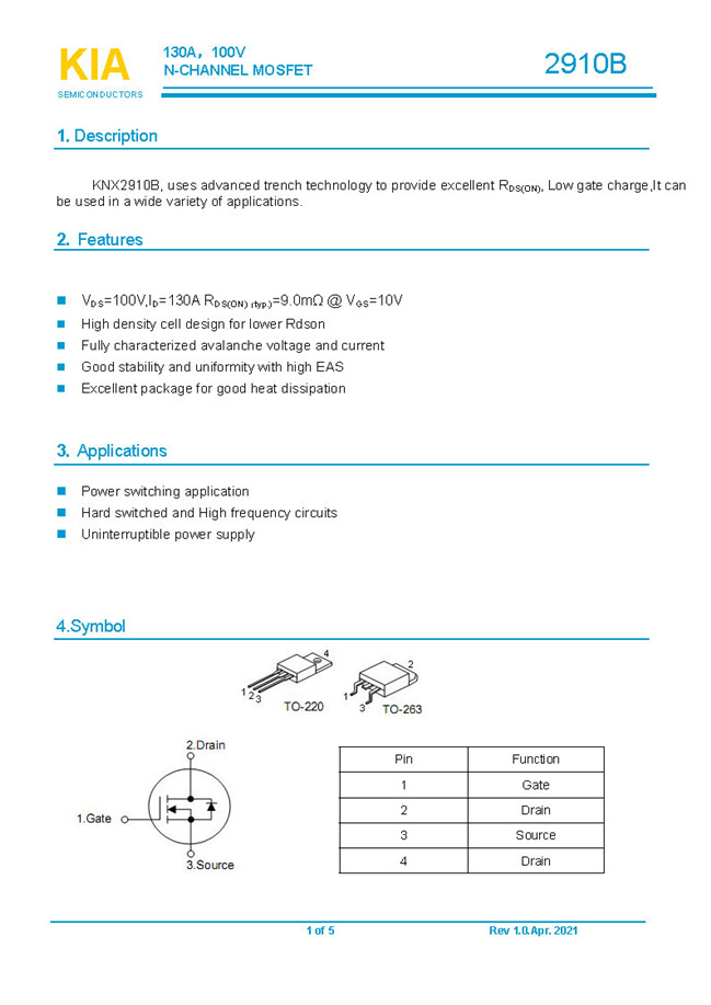 參數: ID(A): 130    BVDSS(V): 100    RDS(ON): 9mΩ    Qg(nC): 160    Package: TO-220.TO-263
