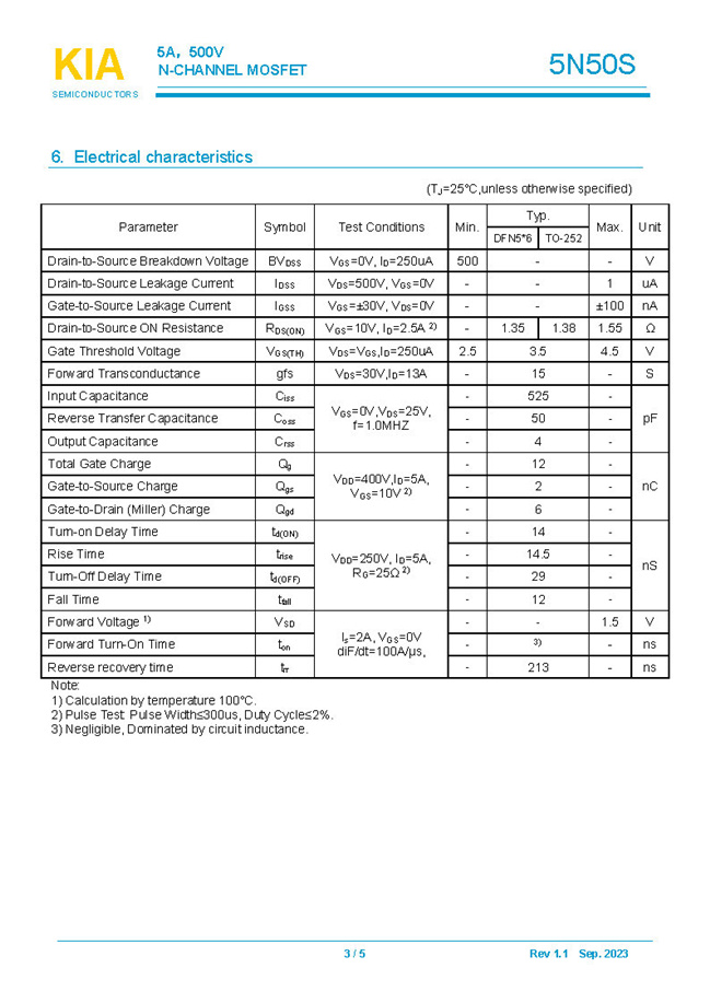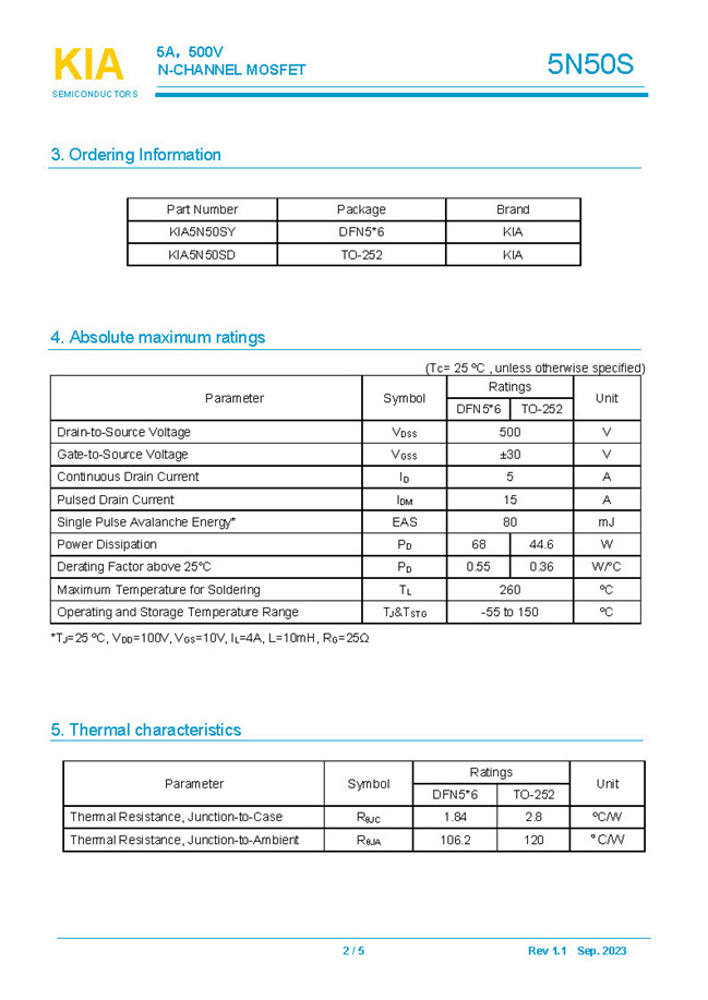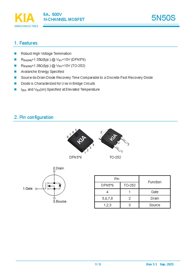 參數(shù): ID(A): 5 BVDSS(V): 500 RDS(ON): 1.38mΩ Qg(nC): 12 Package: TO-252.DFN5*6