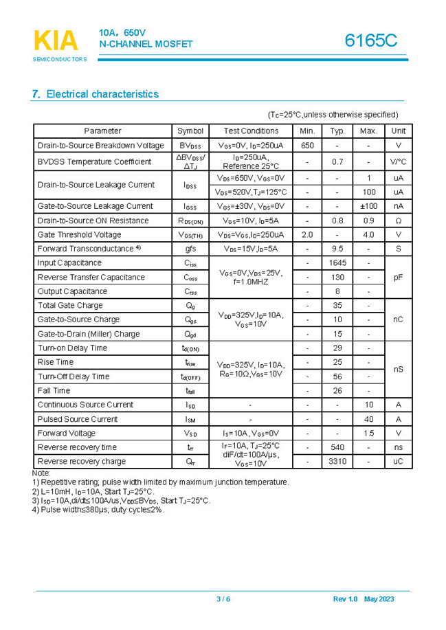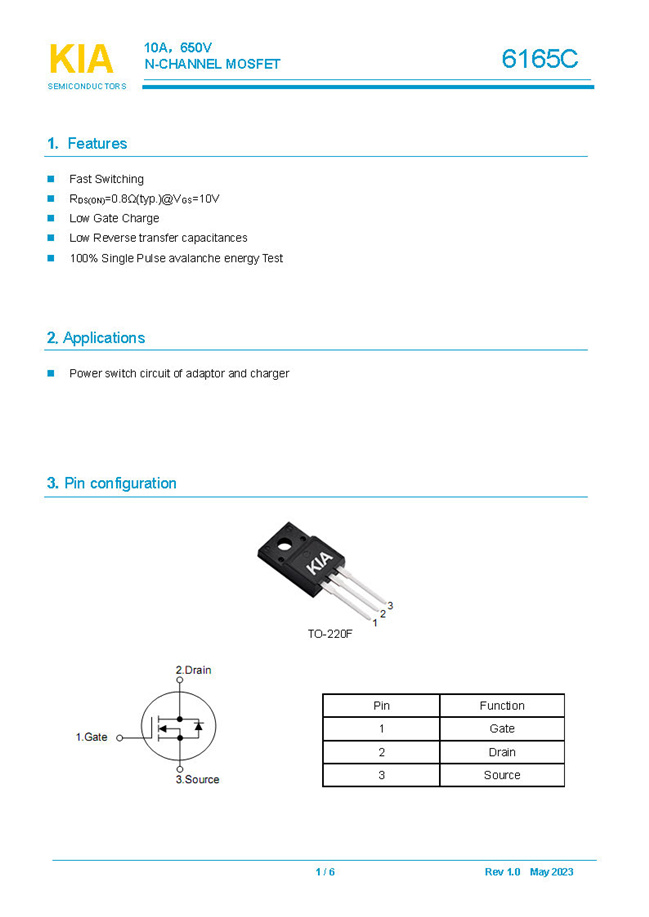 參數: ID(A): 10    BVDSS(V): 650    RDS(ON): 0.8Ω    Qg(nC): 35    Package: TO-220F