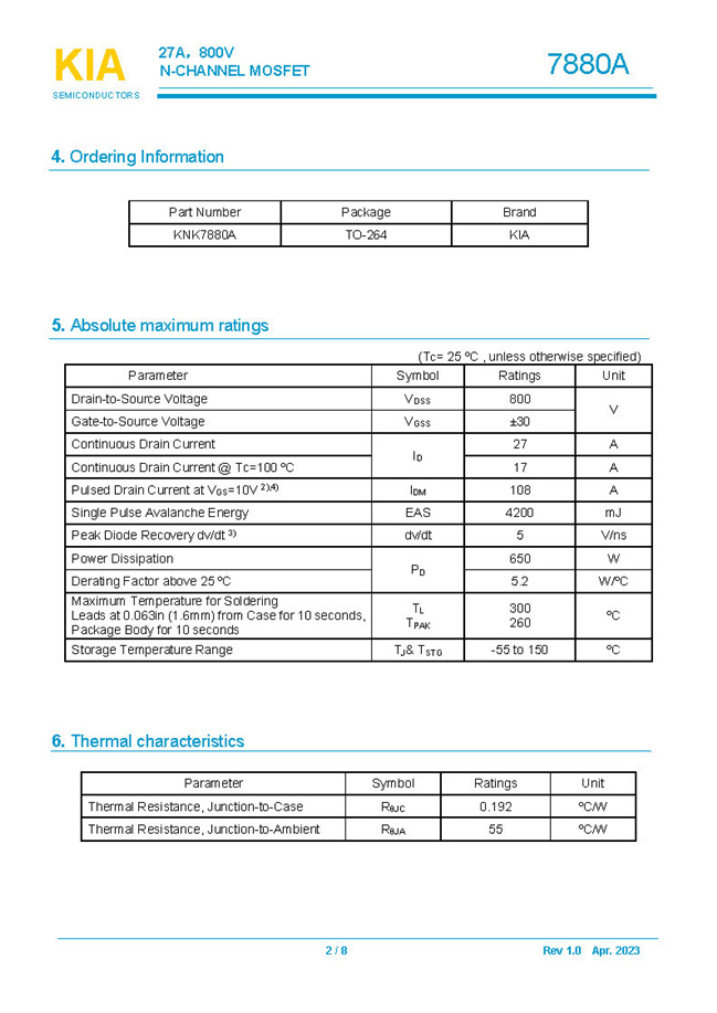 參數(shù): ID(A): 27 BVDSS(V): 800 RDS(ON): 280mΩ Qg(nC): 185 Package: TO-264