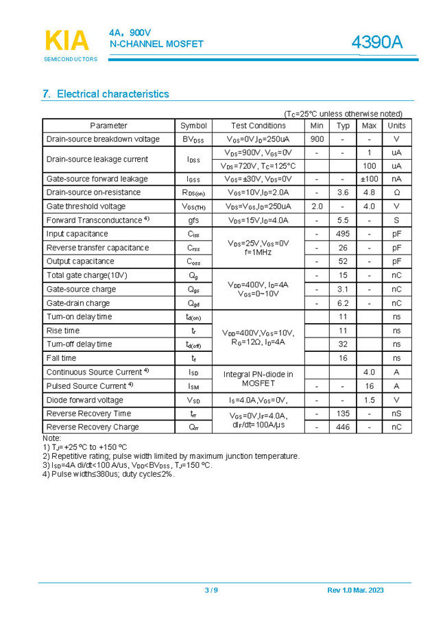 參數(shù): ID(A): 4 BVDSS(V): 900 RDS(ON): 3.6Ω Qg(nC): 15 Package: TO-252.TO-220F