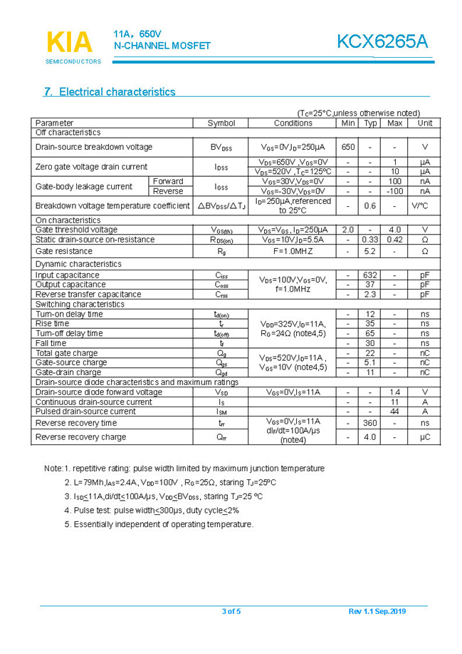參數(shù): ID(A): 11 BVDSS(V): 650 RDS(ON): 0.33Ω Qg(nC): 22 Package: TO-263、220F