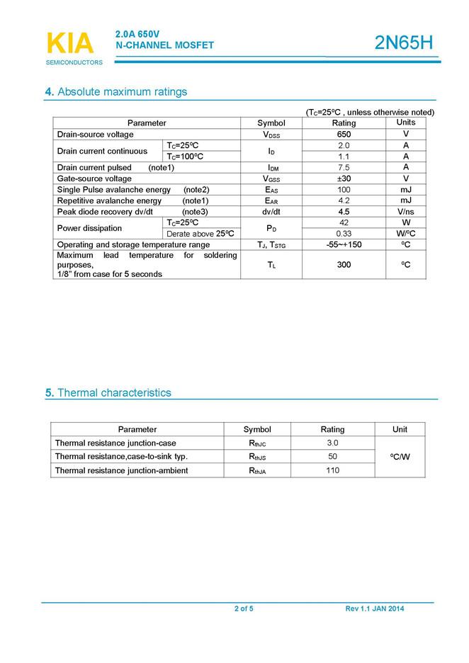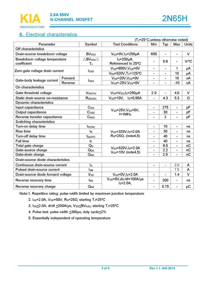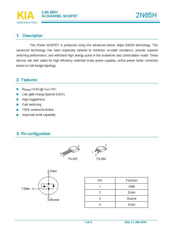 參數: ID(A): 2 BVDSS(V): 650 RDS(ON): 5.3 Qg(nC): 6.5 Package: TO-251、TO-252
