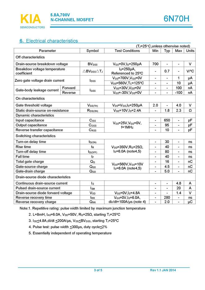 參數: ID(A): 5.8 BVDSS(V): 700 RDS(ON): 2.3 Qg(nC): 16 Package: TO-251、TO-252、TO-220F