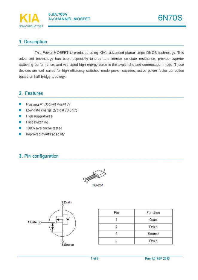 參數(shù): ID(A): 5.8 BVDSS(V): 700 RDS(ON): 1.6 Qg(nC): 23.5 Package: TO-251