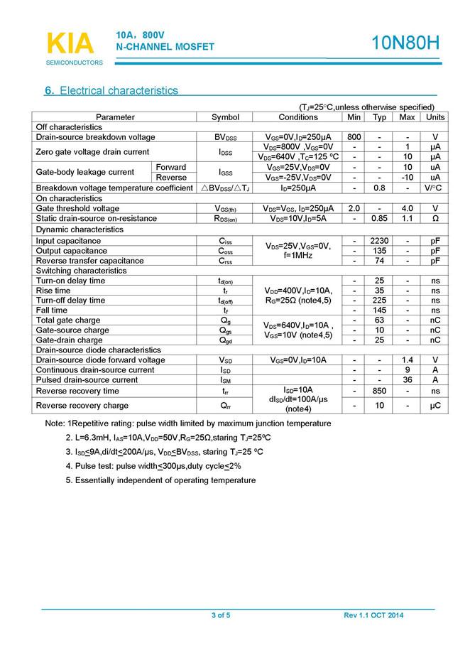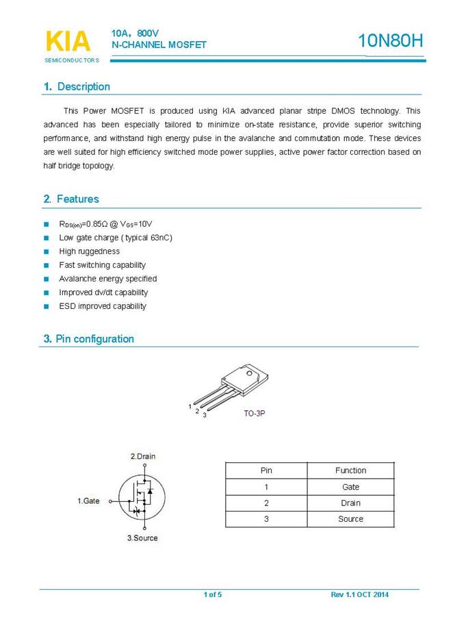 參數(shù): ID(A): 10    BVDSS(V): 800    RDS(ON): 1.1    Qg(nC): 63    Package: TO-3P TO-220F